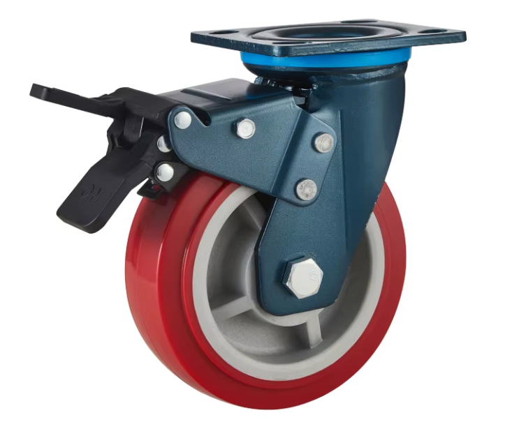 These red PU caster wheels are perfect for warehouse logistics carts, tool cabinets, furniture dollies, medical equipment trolleys, and material handling systems where high visibility and durable mobility are needed. Their vibrant red color also helps in visual identification on busy shop floors and service environments