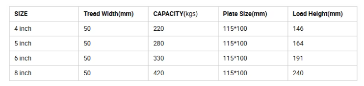 | Load Capacity: | 220 / 280 / 330 / 420 kg per caster |