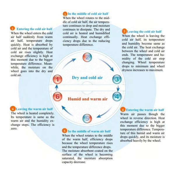 The exhaust and outdoor air pass through half of the wheel separately, when the wheel rotates,