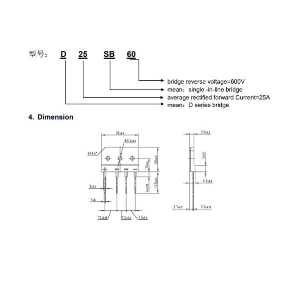 Description: D10XB60 Diode Single 600V 2.9A 4-Pin SIP Rectifier Bridge